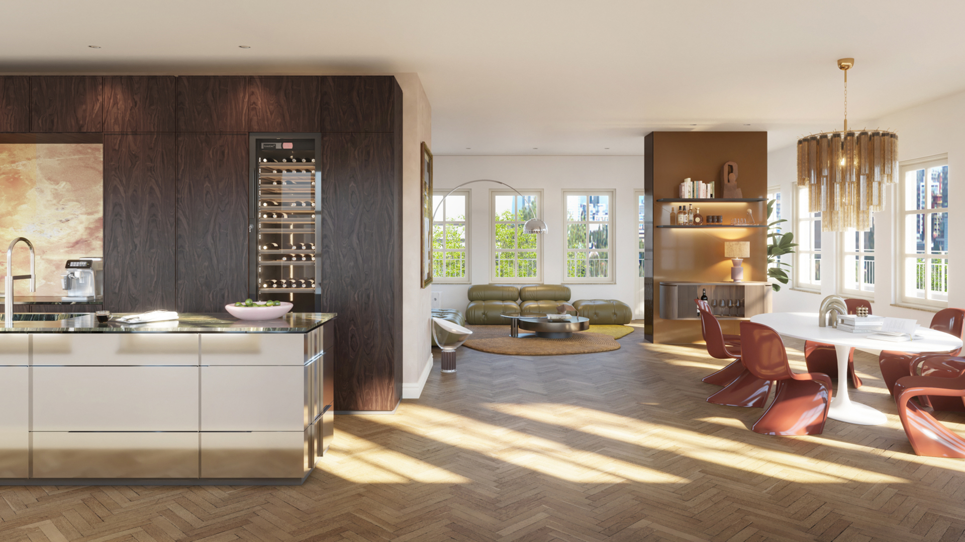 Voor de keukens is gekozen voor het gerenommeerde merk LEICHT, uitgevoerd in de stijlvolle lijnen Primo en Contino. De composiet werkbladen en strak vormgegeven fronten zorgen voor een tijdloze, moderne uitstraling. Er is keuze uit diverse egale kleuren en tien zorgvuldig geselecteerde houttinten, aangevuld met een ruime selectie greeplijsten en werkbladkleuren om de keuken volledig naar eigen smaak samen te stellen.